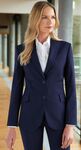 54% Polyester, 44% Wool, 2% LYCRA® Elastane. Semi fitted, 2 button jacket, lapel & pocket contrast detail, 1 inside pocket, centre vent, tailored back panels Centre back length at size 12R = 63cm